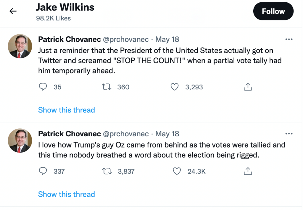 Jake Wilkins, who started working for Johnson last February, confirmed to Heartland Signal that he resigned from Johnson’s reelection campaign earlier this month. He took any mention of the campaign out of his Twitter bio and has recently been liking tweets that are pro-abortion and anti-Trump.