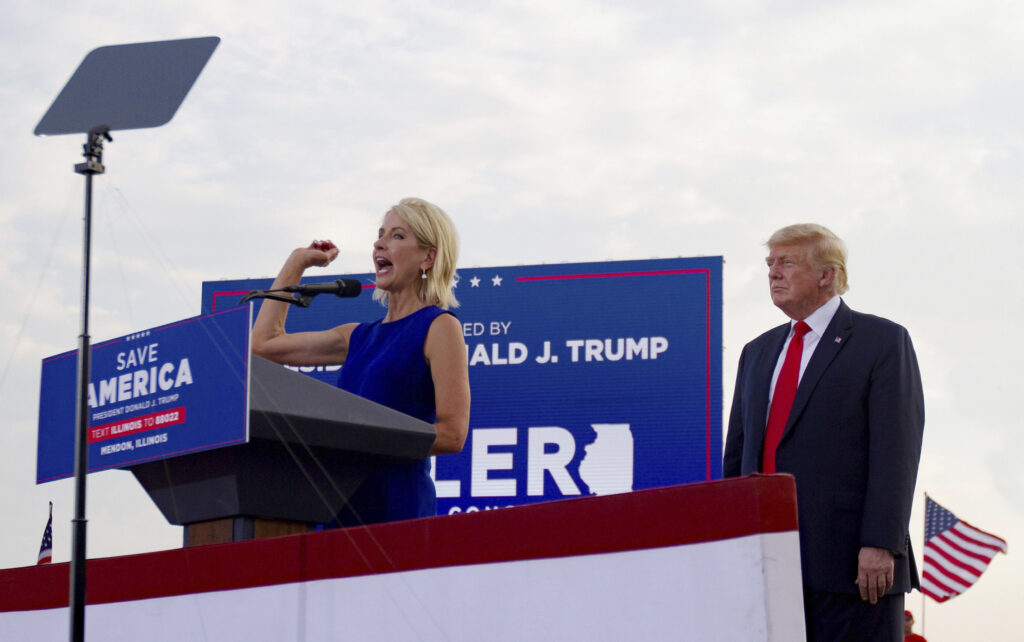Miller is running for reelection in the state’s newly redrawn 15th Congressional District against GOP Rep. Rodney Davis with the former president’s blessing. She had been invited on stage to speak by Trump, who held the rally in Mendon, Illinois, to turn out the vote ahead of the state’s Tuesday primary.