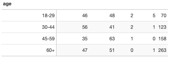 This shows Johnson with a massive lead over Barnes with young men – 65% to 33%, a staggering margin. At the same time, young women favor Barnes, 57% to 39%.