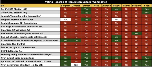 So far, I’m cautiously optimistic. There are a few more “where do they stand on policy” stories than we saw about Jim Jordan. While it’s today story about the candidates is all horse race, Punchbowl News does has a graphic show policy positions. But this one from former pollster Adam Carlson is the best one I’ve seen: