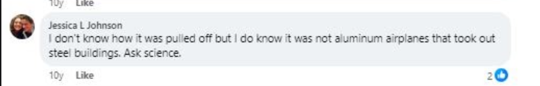 Johnson also responded to a comment from a skeptical user by saying “it was not aluminum airplanes that took out steel buildings. Ask science.”