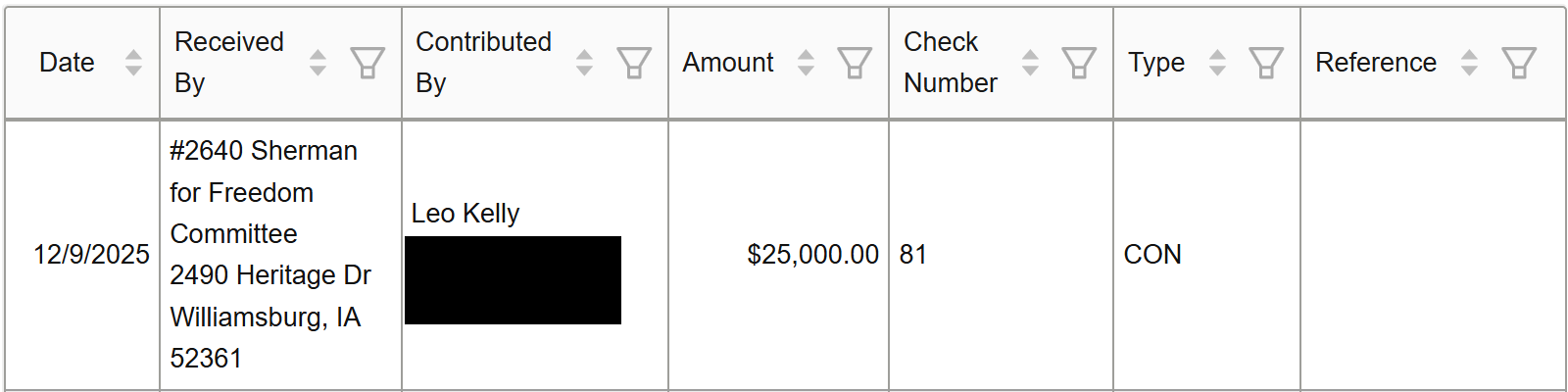 Former Iowa state Rep. Brad Sherman, who finished third in the straw poll last month, has also raised $201,815 in grass roots donations to his Sherman for Freedom Committee. The largest of these donations was a $25,000 contribution from Leo Kelly, according to Iowa’s campaign disclosure database.