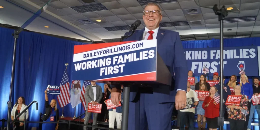Bailey is still quick to pull the trigger on blaming problems in Illinois on Pritzker. Asked about rising gas prices since Trump launched the war in Iran, Bailey argued high costs for gas, utilities, property taxes and other areas were a problem before the recent spike in gas prices.