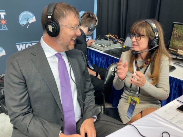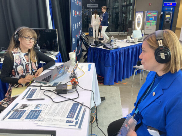 Joan talks to U.S. Sen. Tina Smith (D-MN).