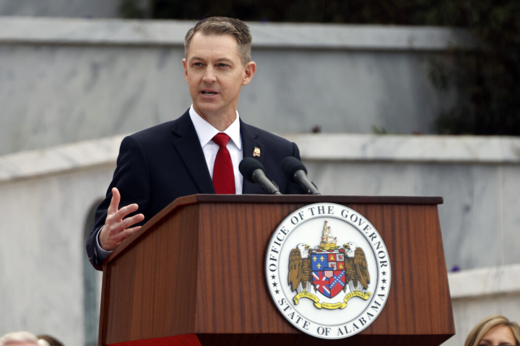 Alabama's Secretary of State Wes Allen speaks during the inauguration ceremony on the steps of the Alabama State Capital Monday, Jan. 16, 2023 in Montgomery, Ala. (AP Photo/Butch Dill, File)