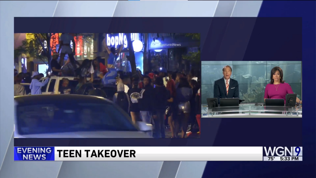 After local Chicago television station WGN-TV News reported on a flash mob by saying teens were “destroying” the Lakeview neighborhood Monday night, local Twitter users repeatedly criticized and mocked the station for the exaggerated language.