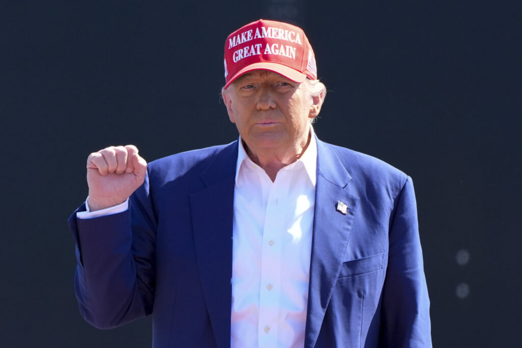 Republican presidential nominee former President Donald Trump is pictured at an election night watch party, Wednesday, Nov. 6, 2024, in West Palm Beach, Fla. (AP Photo/Alex Brandon)