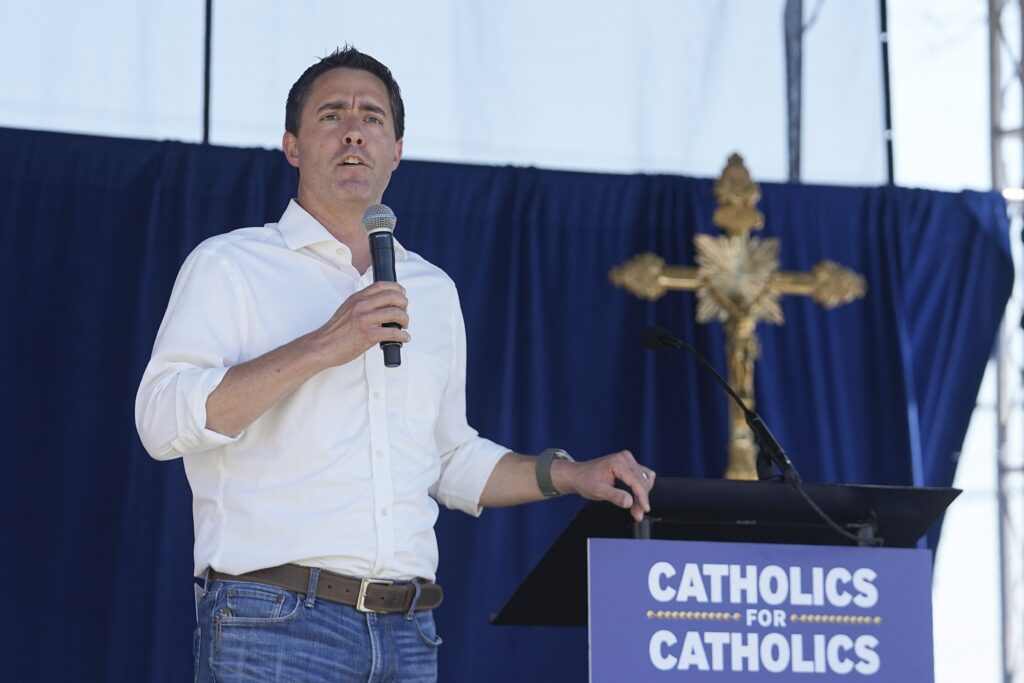 Democratic gubernatorial candidate Ryan Busse speaks at a rally in support of Democrats in Helena on Nov. 4, 2024. (Photo by Blair Miller, Daily Montanan)